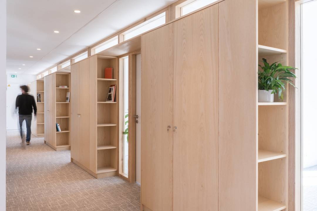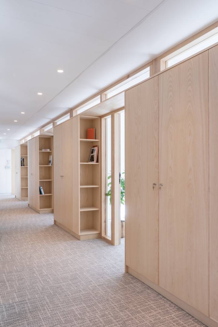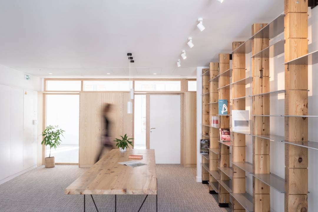 L’élément central de ce projet est la salle de réunion, orientée vers la cour, qui offre une percée visuelle directe entre l’entrée et l’espace café situé à l’opposé. Cette salle de réunion est placée au cœur de l’organisation de l’espace, autour de laquelle se trouvent les zones de circulation et de stockage, essentielles pour les activités quotidiennes de l’Ordre des Architectes. De plus, une grande salle de réunion, située côté rue, est dédiée aux sessions du Conseil, avec une vue dégagée tout en garantissant l’intimité nécessaire aux échanges confidentiels.