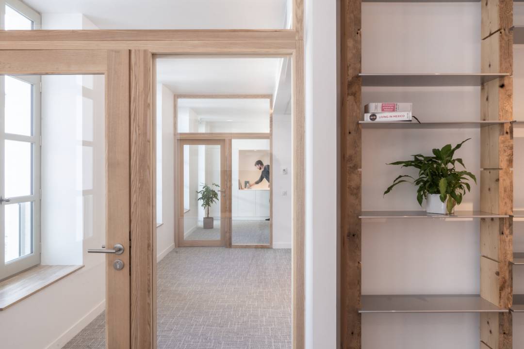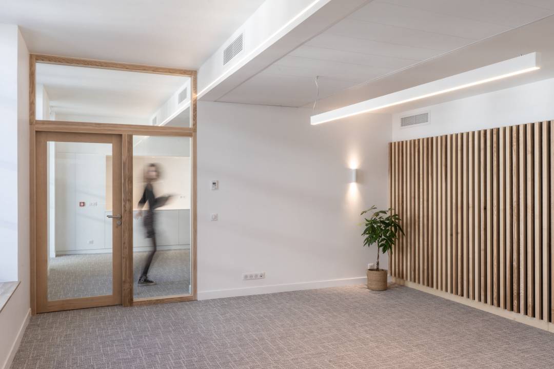 Ce projet de rénovation de bureaux à Toulouse concerne la transformation des deux plateaux de bureaux du Siège du Conseil Régional de l’Ordre des Architectes d’Occitanie (CROA). Situé au troisième étage d’un bâtiment historique de la rue Croix Baragnon, il s’inscrit dans un projet global de rénovation de l’immeuble, visant à créer un espace contemporain, fonctionnel et dédié aux métiers de l’architecture, de l’urbanisme et de l’environnement. Notre approche pour cette rénovation de bureaux à Toulouse a permis de conserver le caractère traversant du plateau tout en optimisant la lumière naturelle et la fluidité de l’espace. Grâce à des jeux de transparence, les bureaux individuels ont été repensés pour offrir un environnement de travail confortable et intime. Chaque détail a été pensé pour offrir une atmosphère de bien-être, favorisant la concentration et la créativité.