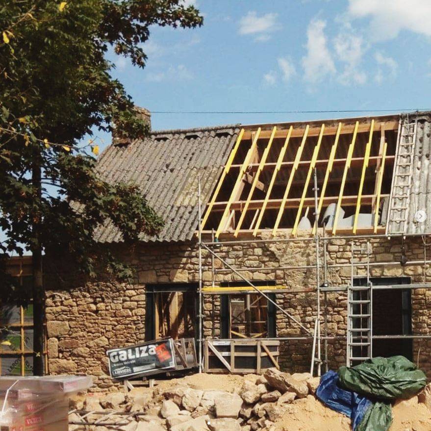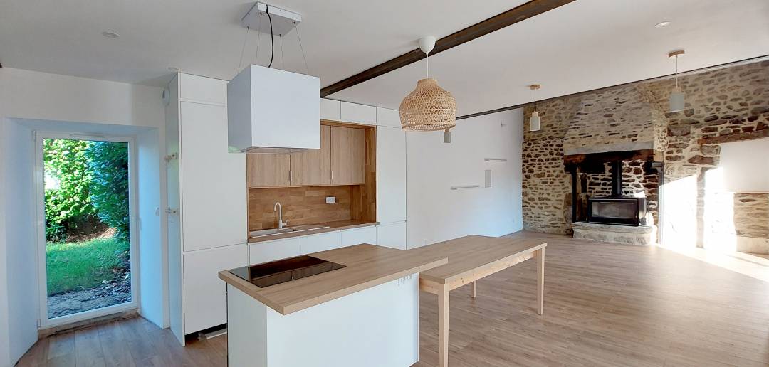 Réhabilitation intégrale d'une grange agricole de 1820 en longère d'habitation Travaux réalisés : - Viabilisation / assainissement - Terrassement / gros oeuvre maçonné et acier - Toiture ardoise - Extension ossature bois à toit plat - Agencement intérieur sur mesure