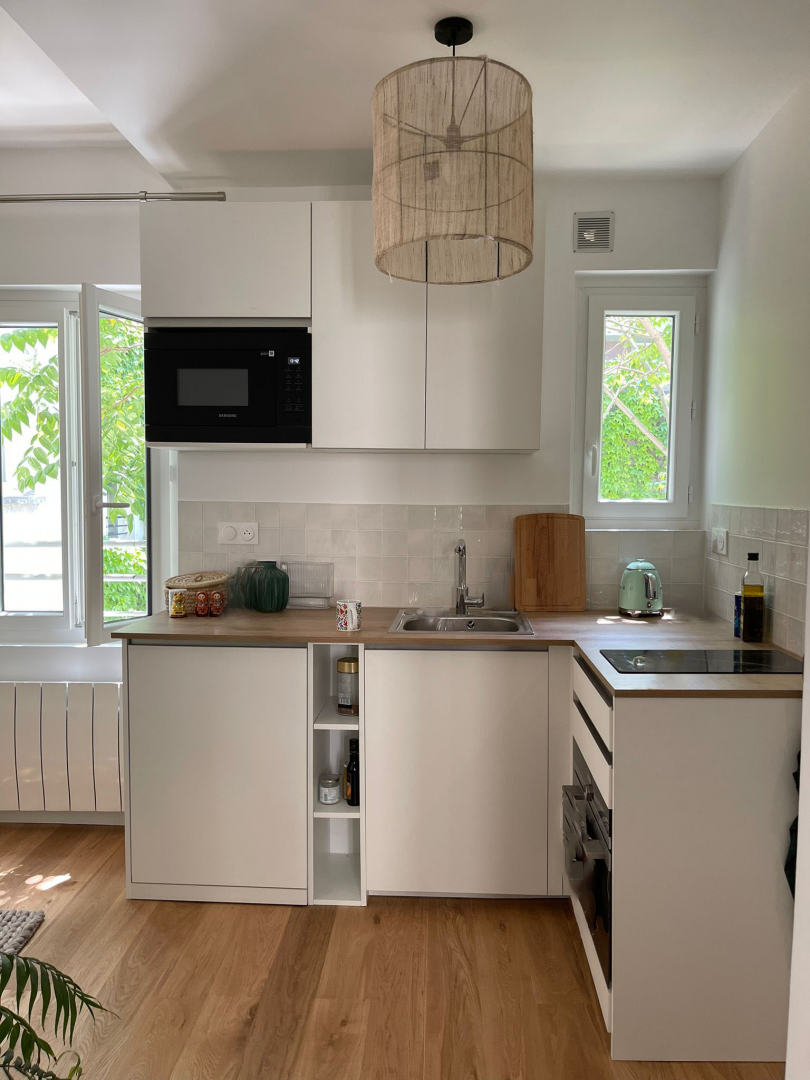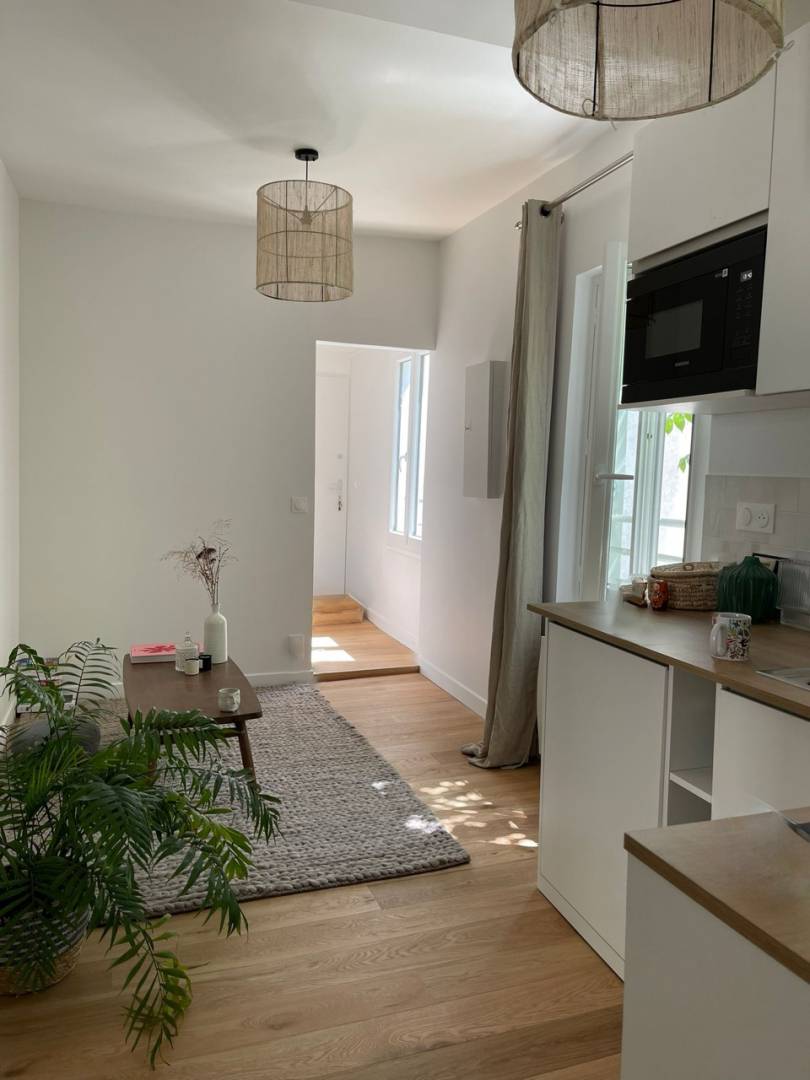 Rénovation complète d’un appartement de 30 m2 avec suivi de chantier. Agencement, redistribution des espaces, travaux, menuiserie, décoration et ameublement