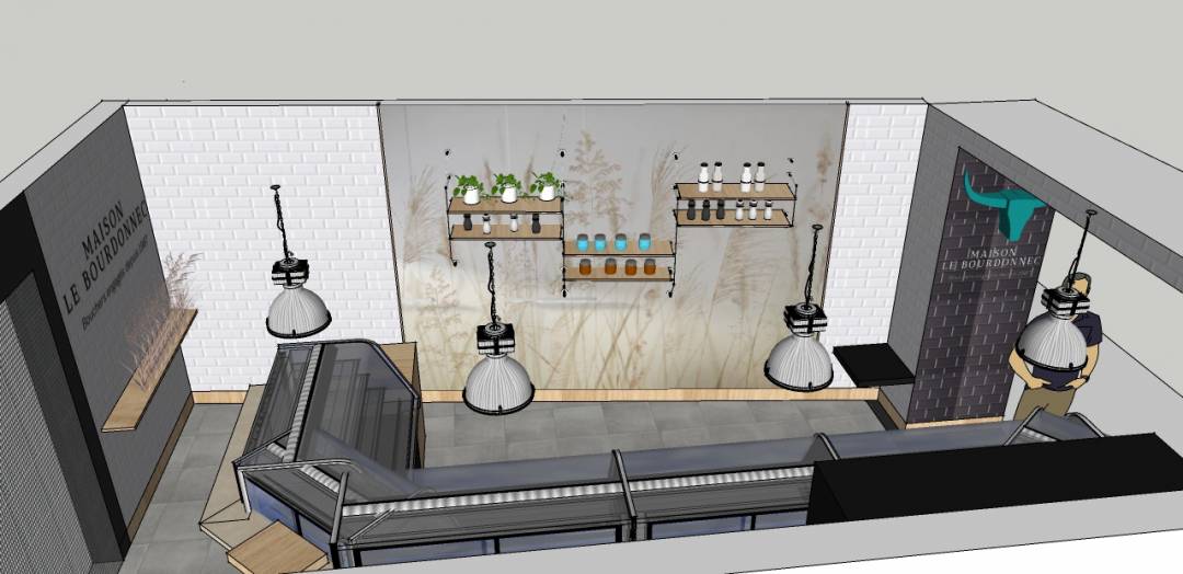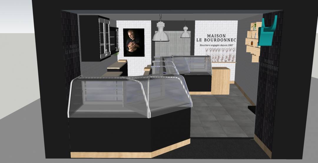 Rénovation totale et new look d'une boucherie parisienne de renom (paris 16ème), en vue de créer une ligne graphique et esthétique cohérente avec les 2 autres boucheries du même propriétaire de la capitale.