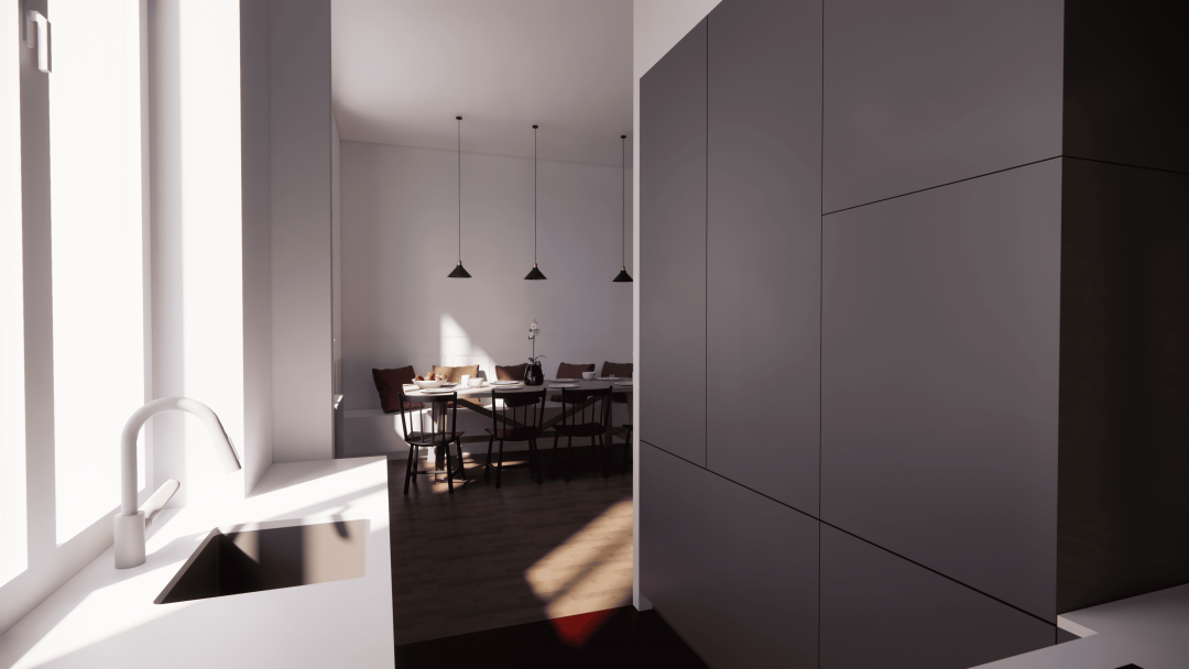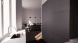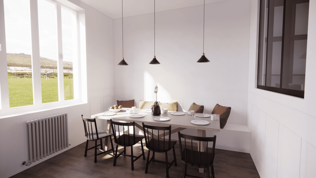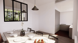 Cette réhabilitation complète sur trois niveaux inclut l’extension du salon et une redéfinition des espaces de vie. Ici, la cuisine et la salle à manger ont été pensées pour répondre au souhait des clients : disposer d’un espace repas distinct, fermé, tout en conservant une cohérence avec le reste de la maison.