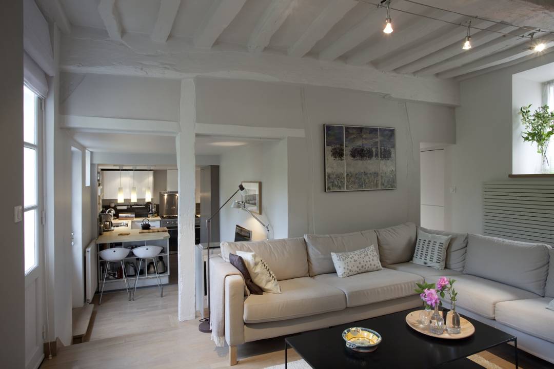 Deux projets en un : une maison repensée et une annexe réinventée. Cette mission, confiée par l’agence d’architecture MWAH, regroupait deux interventions complémentaires : Le réaménagement du rez-de-chaussée de la maison principale, visant à organiser et clarifier les espaces de vie malgré une contrainte marquante : un dénivelé de 1,50 m sur toute la longueur de la maison. La réhabilitation d’une annexe en une véritable maison dédiée aux enfants et aux amis de passage le week-end.