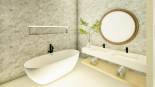 L’organisation des volumes privilégie la fluidité et l’ouverture. Dès l’entrée, un chemin végétalisé invite à la déconnexion, menant à un espace de vie central baigné de lumière, ouvert sur le jardin et la piscine. À l’étage, une terrasse suspendue prolonge l’expérience intérieure/extérieure, propice à la contemplation.