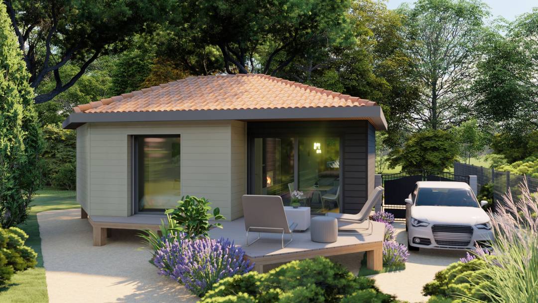 Ce projet est né de la volonté de proposer une architecture compacte, écoresponsable et chaleureuse, en harmonie avec son environnement naturel. La maison s’inscrit dans une démarche de construction bois, mettant à l’honneur des matériaux biosourcés et un mode constructif léger, rapide à mettre en œuvre et respectueux du site.