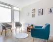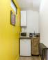 Le client souhaitait transformer un local commercial en cabinet paramédical. Pour cela il fallait redistribuer l’espace pour créer deux pièces de consultation, une salle d’attente, une kitchenette et des sanitaires. Ce projet devait répondre aux normes ERP catégorie 5. Les cloisons nécessitaient une très bonne isolation phonique, avec le moins d’encombrement possible sur la surface au sol. Les cloisons phoniques sont donc composées de 2 plaques de BA13 phoniques, entre lesquelles sont disposées une couche d’isolation en laine de verre, et une couche d’isolation phonique en textiles recyclés. Des portes phoniques ont été installées pour maximiser l’isolation. La kitchenette étant une pièce aveugle, nous avons opté pour un éclairage en double jour. Des couleurs vives et lumineuses ont été retenues pour la décoration de cette pièce afin d’agrandir et égayer l’espace. Certaines menuiseries ont dû être changées pour améliorer les performances d’isolation, et une fenêtre oscillo-battante a été installée. L’extracteur d’air dans les WC a été remplacé, et raccordé à la kitchenette. La façade du local a également été modifiée : l’enduit étant abîmé, il a été réparé, puis la façade a été peinte dans des tons neutres bleu-gris. Une vitrophanie a été installée sur les menuiseries afin de garantir la confidentialité à l’intérieur du cabinet, tout en laissant passer la lumière naturelle. Sur le sol, un parquet flottant stratifié a été installé sur toute la surface du local, excepté dans les sanitaires où l’ancien carrelage a été conservé pour faciliter l’entretien. Pour faciliter le bien-être des patients, une décoration scandinave a été retenue : dans la salle d’attente la peinture marron apporte un effet enveloppant, et les couleurs naturelles invitent à la détente. Dans les salles de consultation, la peinture beige adoucit les pièces et le bleu-gris apporte de la profondeur et favorise l’apaisement.