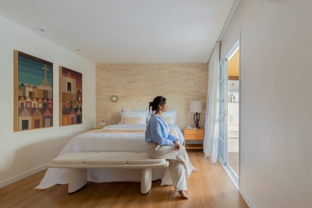 Lumineuse et accueillante, la suite apporte avec elle le confort d'une maison de plage dans sa multifonctionnalité quotidienne.