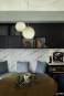 J’ai aussi beaucoup aimé jouer avec les détails : touches laiton, veinage marbre, lumière douce. Ce sont eux qui donnent à la pièce son caractère affirmé, tout en restant chaleureuse et accueillante.