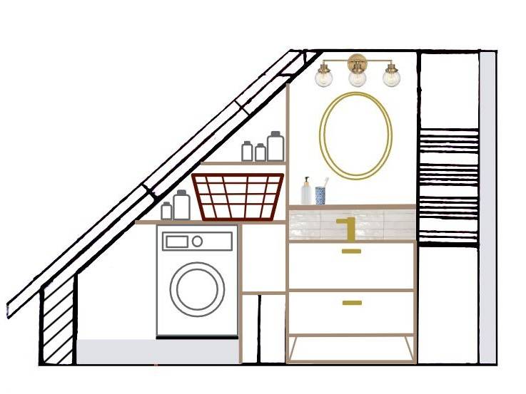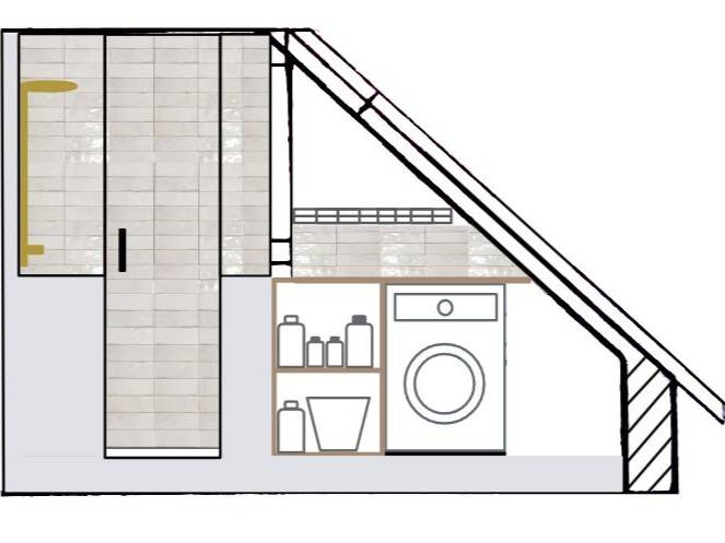 • Un coin buanderie, situé sous la mansarde, inconfortable au quotidien