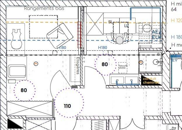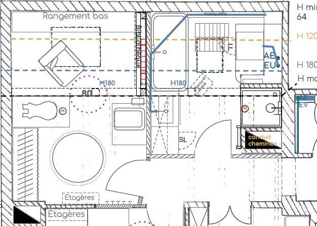 Le projet consistait à créer une chambre supplémentaire en transformant le dressing actuel, tout en cloisonnant l’unique salle d’eau de l’appartement, aujourd’hui ouverte sur cet espace dressing.