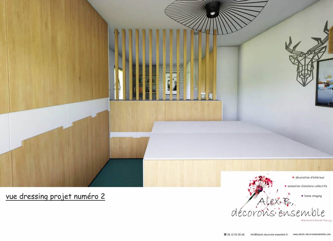 Plan 3 D pour transformation d'un couloir, de 2 chambres, 1 salle de douche et 1 salle de bains en une suite parentale.