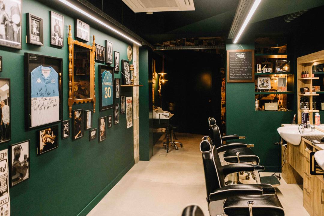 Salon de barbier, installé dans le petit Bayonne, Barberhood est l’histoire et l’évolution de 3 amis qui se retrouvent dans le business. C’était une rénovation totale pour ce local qui était aussi en très mauvais état et pas du tout adapté à leur activité. Le premier challenge a été de redessiner complètement l’espace en tenant compte des contraintes techniques liées aux bâtiments anciens du centre ville de Bayonne. Je vous propose ici un style grunge, urbain, rock avec une pointe de rétro soutenu d’un magnifique vert basque. Une multitude de détails dans la déco, comme un cabinet de curiosités, permettent aux clients de patienter tout en découvrant à chaque fois de nouvelles choses. La décoration a été pensée pour faire ressortir au maximum la personnalité des trois gérants. Des heures de recherches et de visites en brocantes ont été indispensables pour trouver tous ces objets insolites, une collection de photos, une accumulation de magasines et détails de groupes de musique. En somme, un endroit stylé, convivial et moderne !