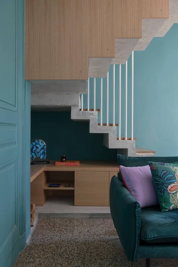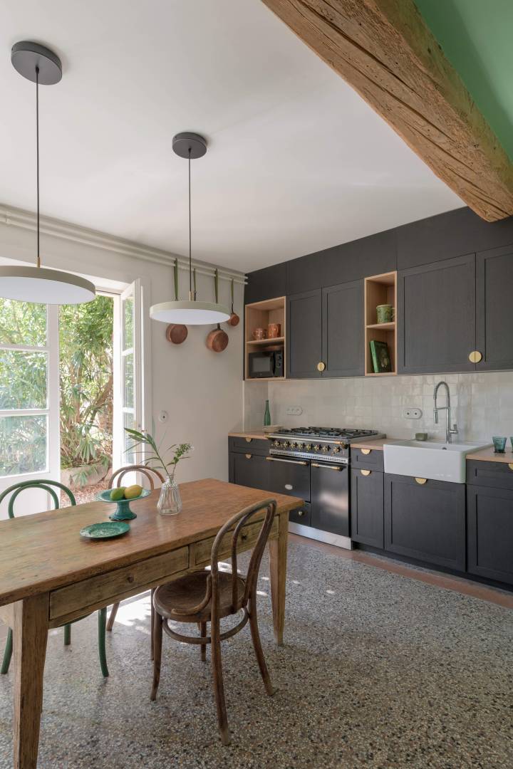 Rénovation complète d'une maison bourgeoise du XIXème siècle où comment révéler l’ancien par le contemporain. Rénovation des enduits sur murs en pisé  Rénovation des boiseries (stylobats, portes, …)  Mise aux normes de l’installation électrique  Mise en place d’une climatisation gainable  Création d’un escalier béton  Création de mobiliers sur mesure.