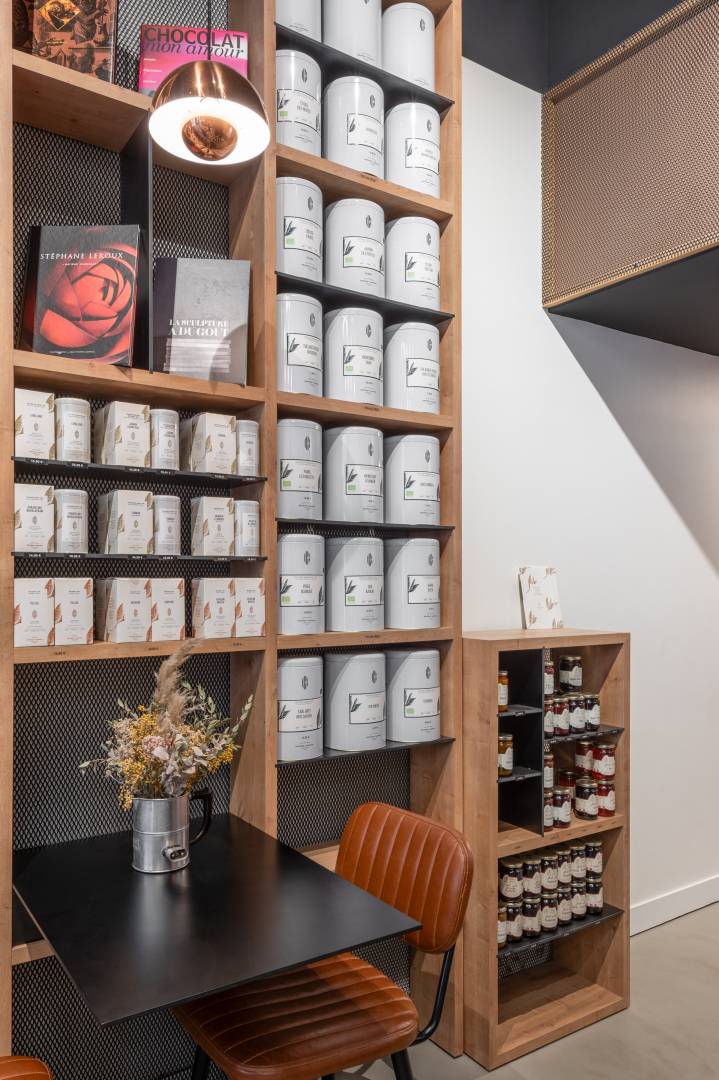 Aménagement d’une boutique pour un artisan torréfacteur-chocolatier et optimisation de la surface grâce à la conception de mobilier sur mesure. un atelier de fabrication de chocolats avec chambre froide un espace boutique avec présentoirs, vitrine à chocolat et installation d’un torréfacteur plusieurs espaces de consommation sur place : comptoirs, mange-debout et tables Création d’une identité visuelle de la boutique Création de mobiliers sur mesure Secteur sauvegardé.