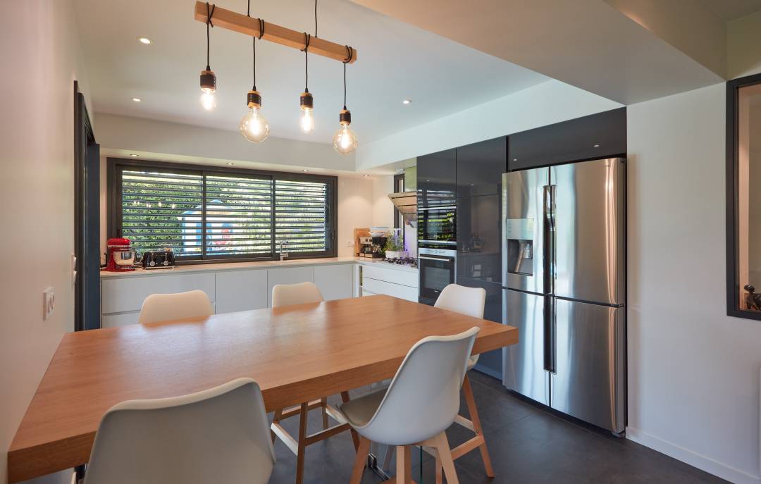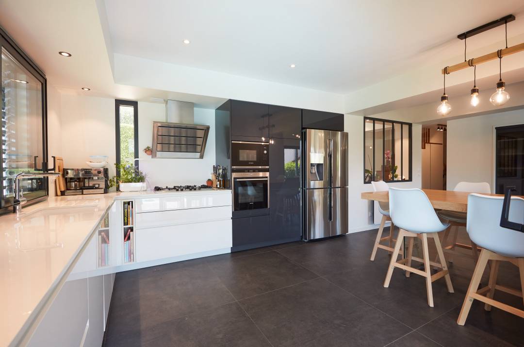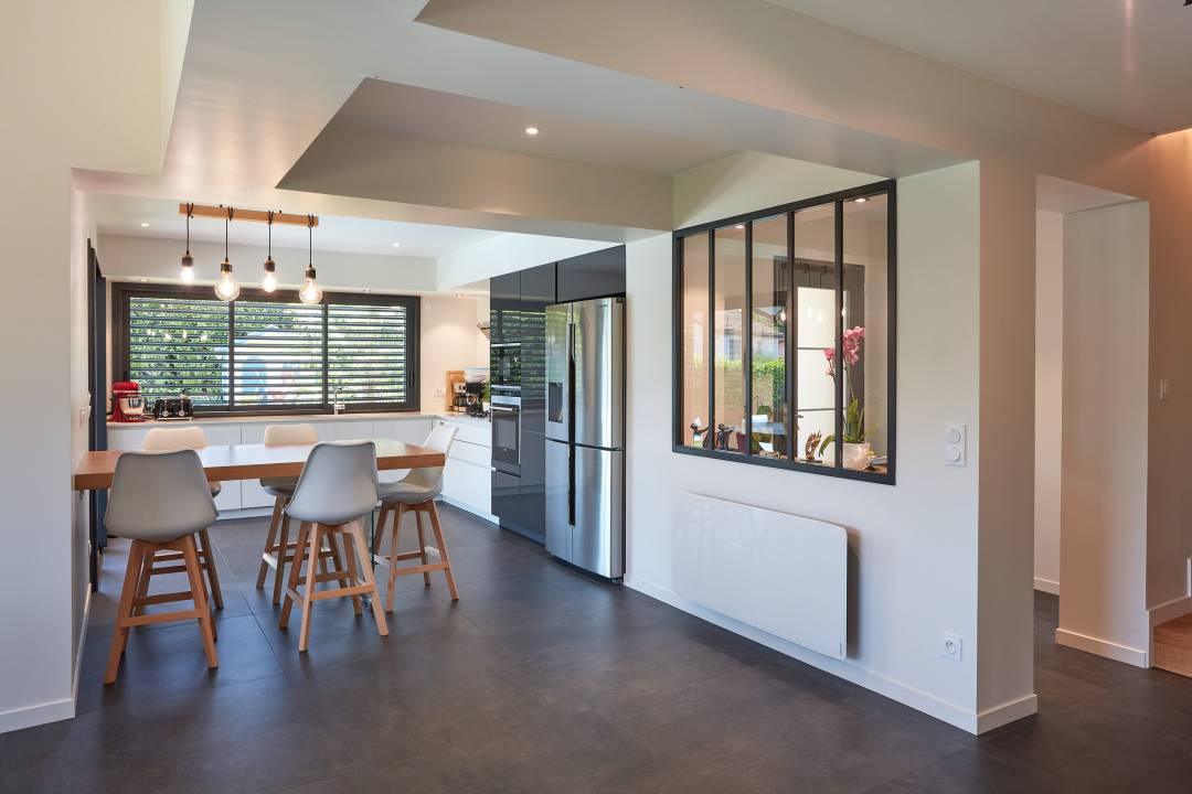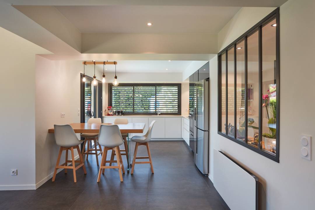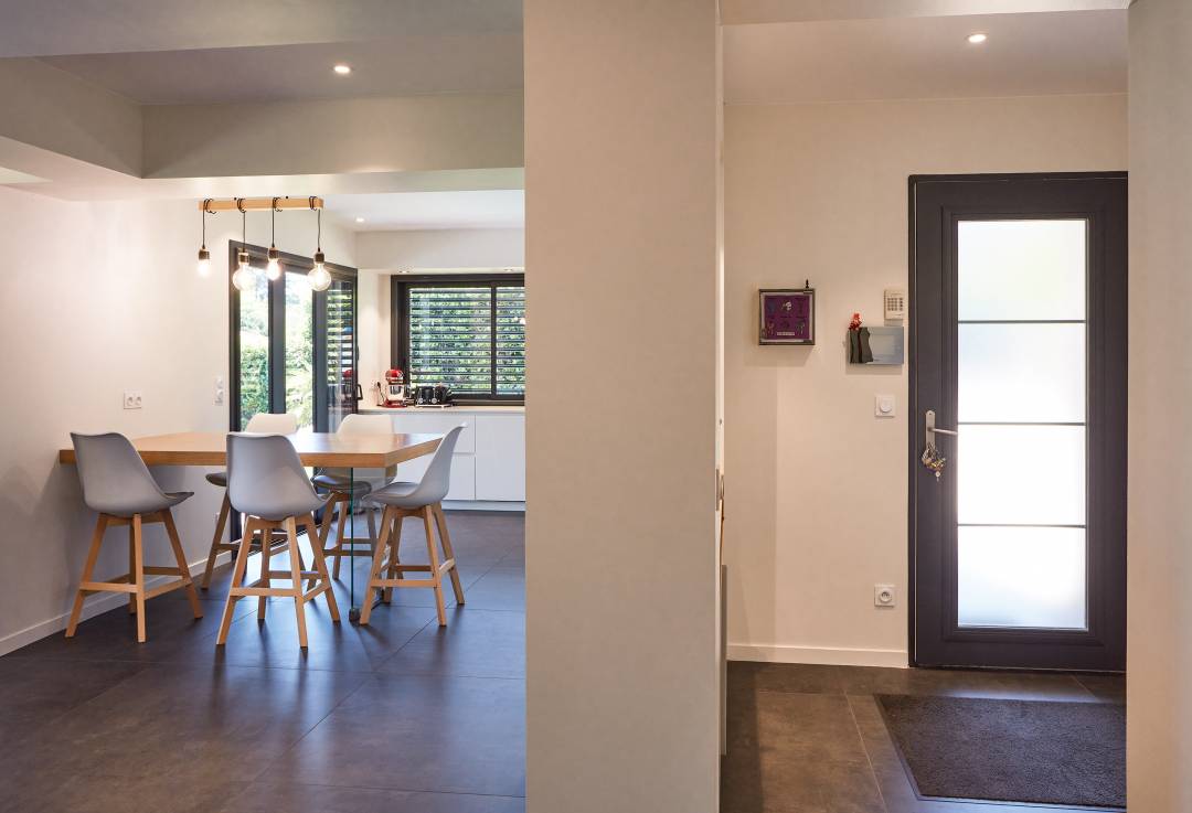 Création d'une extension d'une maison pour offrir une cuisine généreuse et des espaces de vie plus ouvert au coeur de la maison et sur l'extérieur. Reprises structurelles importantes pour créer de larges ouvertures intérieures tout en portant l'étage de la maison.
