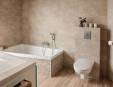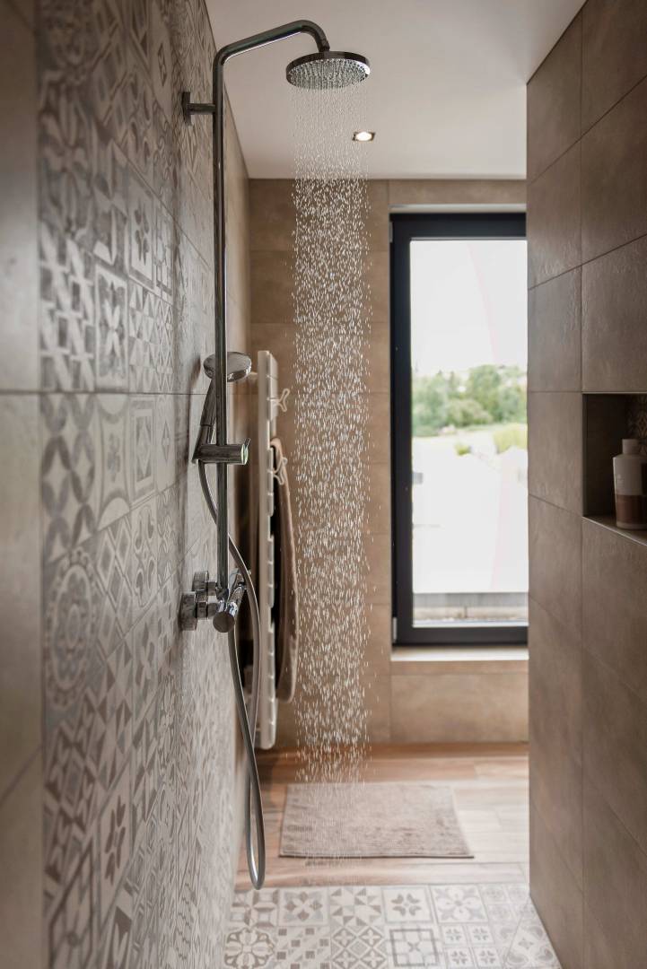 PROJET D'AMENAGEMENT SUR-MESURE - HAGUENAU (67)   Dans cette construction neuve située à Haguenau, les propriétaires souhaitaient faire de la salle de bain un espace à la fois fonctionnel, moderne et élégant. Notre décoratrice d’intérieur MH Interior a imaginé un aménagement en cercle, fluidifiant la circulation tout en délimitant distinctement les différentes zones d’usage.   Cette approche innovante permet à toute la famille de profiter pleinement de la pièce, quelle que soit l’heure de la journée.   Un agencement intelligent pour une salle de bain familiale   Le défi principal ? Organiser un espace généreux sans le cloisonner. Pour cela, un meuble vasque suspendu a été positionné au centre de la pièce. Ce choix structure l’espace tout en facilitant les déplacements autour de lui. Derrière cette séparation centrale, une grande douche à l’italienne avec niche carrelée intégrée vient créer une atmosphère de spa à la maison.   Des matériaux nobles et une ambiance apaisante   Au sol, un carrelage effet bois apporte une touche chaleureuse, naturelle et durable. Il est parfaitement assorti au grès cérame mat rectifié qui recouvre les murs, pour une esthétique douce et contemporaine. Dans la douche, un revêtement effet carreaux de ciment apporte du rythme et une pointe de fantaisie. Ces motifs effacés renforcent le style intemporel tout en délimitant visuellement la zone de douche.   Praticité, design et confort au quotidien   Le meuble vasque suspendu, équipé de deux points d’eau, assure une utilisation fluide au quotidien. Son design épuré et ses façades turquoise insufflent une note d’évasion à l’ensemble. La baignoire asymétrique Duravit est soigneusement placée près de la baie vitrée. Sa forme étudiée permet une bonne circulation, tout en valorisant l’apport de lumière naturelle dans la pièce.   Un projet pensé pour durer   Chaque détail a été étudié pour garantir la durabilité des matériaux, la facilité d’entretien et le confort d’usage. L’ensemble de la salle de bain reflète l’expertise de notre réseau MH Interior en matière de projets haut de gamme et bien pensés. Le résultat : une salle de bain familiale raffinée, intemporelle et propice à la détente.   📸 Crédits photos : Amandine Gries Photographies