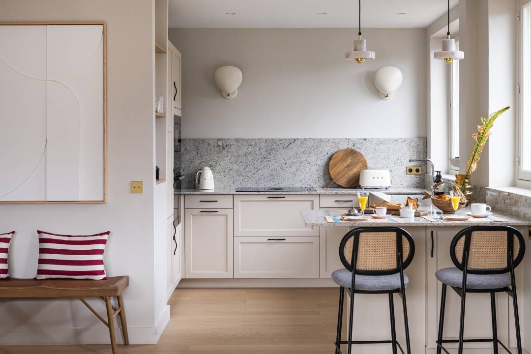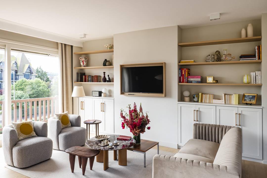 Nous avons accompagné nos clients dans la rénovation complète de leur appartement situé au cœur de Deauville. Pensé comme un pied-à-terre familial et destiné aussi à la location saisonnière, l’appartement devait conjuguer confort, fonctionnalité et élégance. Nous avons décloisonné les espaces afin de redonner fluidité et luminosité, puis entièrement repensé l’agencement pour intégrer huit couchages sans sacrifier le confort. La grande pièce de vie a été ouverte et réorganisée pour accueillir une cuisine contemporaine, un espace salle à manger convivial et un salon chaleureux. Le choix des matériaux et des finitions s’est porté sur des tons intemporels, en écho à l’esprit chic et raffiné de Deauville, pour créer un lieu harmonieux, durable et accueillant, aussi agréable pour les séjours en famille que pour les hôtes de passage.