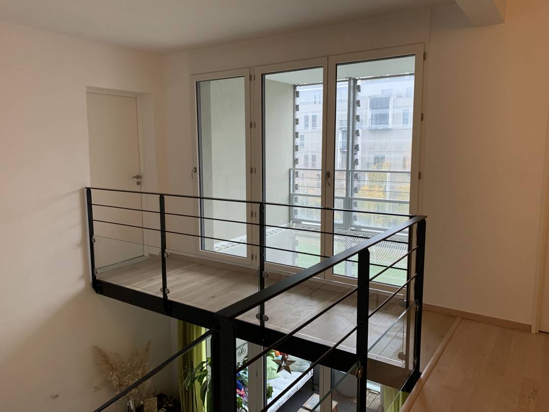 Création d'une ouverture entre 2 appartements pour les rassembler en une seule habitation. Création d'une passerelle pour relier les espaces. Aménagement d'un espace complémentaire grâce à un filet d'habitation.