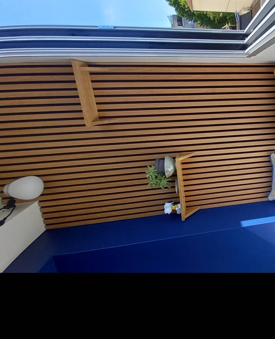 Aménagement d’une loggia-débarras de 3 m², initialement utilisé comme débarras, pour en faire un espace fonctionnel et agréable, dédié au télétravail ou à une pause café. Objectif Valoriser un espace exigu en le transformant en un lieu accueillant et convivial, apportant confort et praticité au quotidien. Particularités du projet Fermeture de la loggia par des fenêtres coulissantes, améliorant l’isolation et l’usage en toute saison. Création de coffres de rangement sous les assises, optimisant chaque mètre carré. Habillage des murs en tasseaux de bois, pour un effet chaleureux et contemporain. Choix harmonieux des couleurs pour agrandir visuellement l’espace et renforcer le confort. Installation d’un petit bar pour prendre un café ou déjeuner sur le pouce.