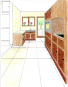 La cliente souhaitait rénover sa cuisine, mais elle hésitait entre plusieurs styles de décoration très différents. Je lui ai donc proposé un plan unique de la pièce décliné en trois ambiances distinctes.