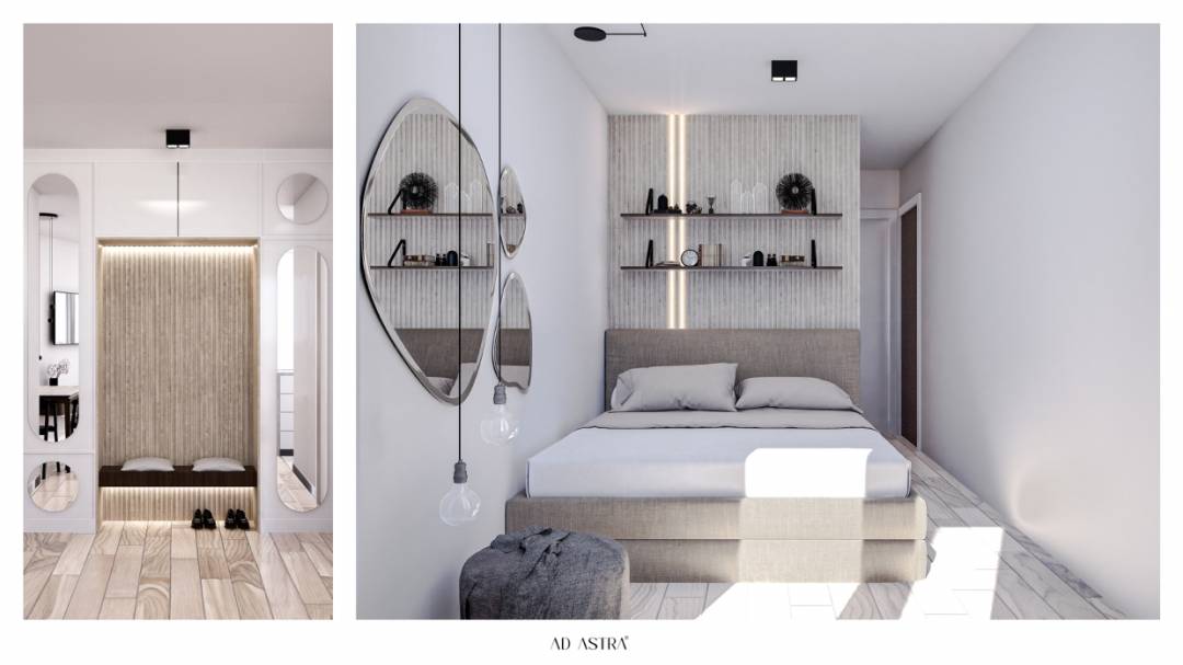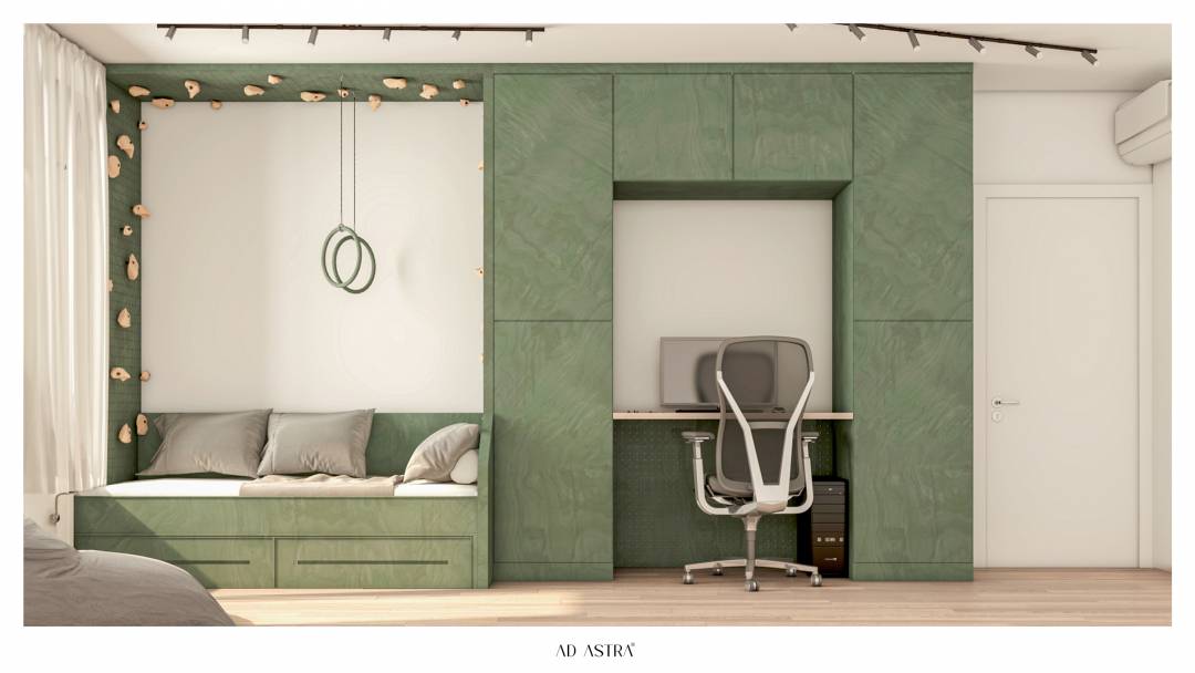 ✨ Présentation du projet ✨ Un appartement moderne et minimaliste, pensé pour offrir un confort absolu et une esthétique raffinée. 🛏️ Caractéristiques : • Cuisine fonctionnelle • Canapé confortable • Lit sur mesure avec rangement intégré • Mur d’accent en bois texturé • Étagères suspendues au design épuré • Armoire transparente avec éclairage chaleureux • Miroirs artistiques aux formes organiques • Éclairage d’ambiance pour une atmosphère parfaite • Tons verts apaisants et lignes contemporaines • Banquette intégrée avec espace de rangement • Coin bureau ergonomique et fonctionnel • Mur d’escalade intérieur pour un peu de plaisir et d’activité • Lumière douce et accueillante pour une ambiance harmonieuse Une combinaison parfaite de simplicité, de fonctionnalité et d’élégance. Sublimez votre espace de vie grâce à un design réfléchi et inspirant. 🌿