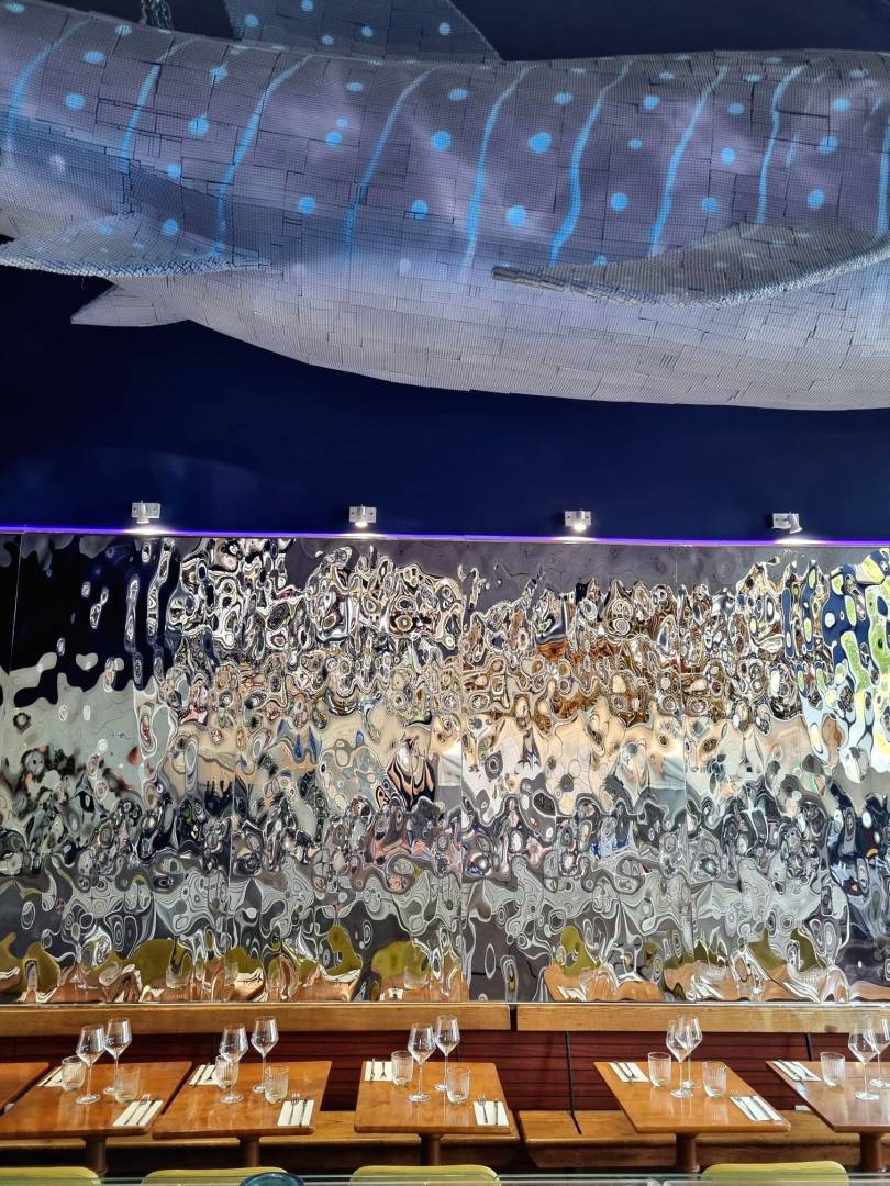 Le lieu est pensé comme une traversée entre deux univers qui se répondent : celui de la poissonnerie, brut et authentique, et celui de la restauration, convivial et expérientiel. La scénographie intérieure s’inspire directement du milieu marin comme une plongée sensorielle où volumes, matières et lumières recréent l’atmosphère de la mer.