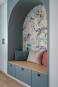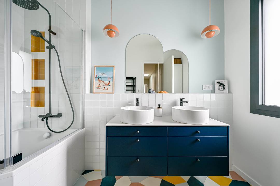 Le projet Joffre est une rénovation complète d'une maison des années 60 de 230 m². Dans cette maison répartie sur deux niveaux, les clients souhaitaient revoir entièrement l'aménagement intérieur pour l'adapter au mieux à leurs besoins. Les différents espaces ont été redistribués pour plus de cohérence et de fonctionnalité. L'ambiance esthétique se veut chaleureuse et colorée, à l'image de cette famille pleine de vie. Aux côtés d'un architecte HMONP, j'ai accompagné les clients de la conception (propositions d'agencements, propositions esthétiques, choix des matériaux et du mobilier, conception de meubles sur mesure) jusqu'à la livraison de la maison à la fin du chantier.