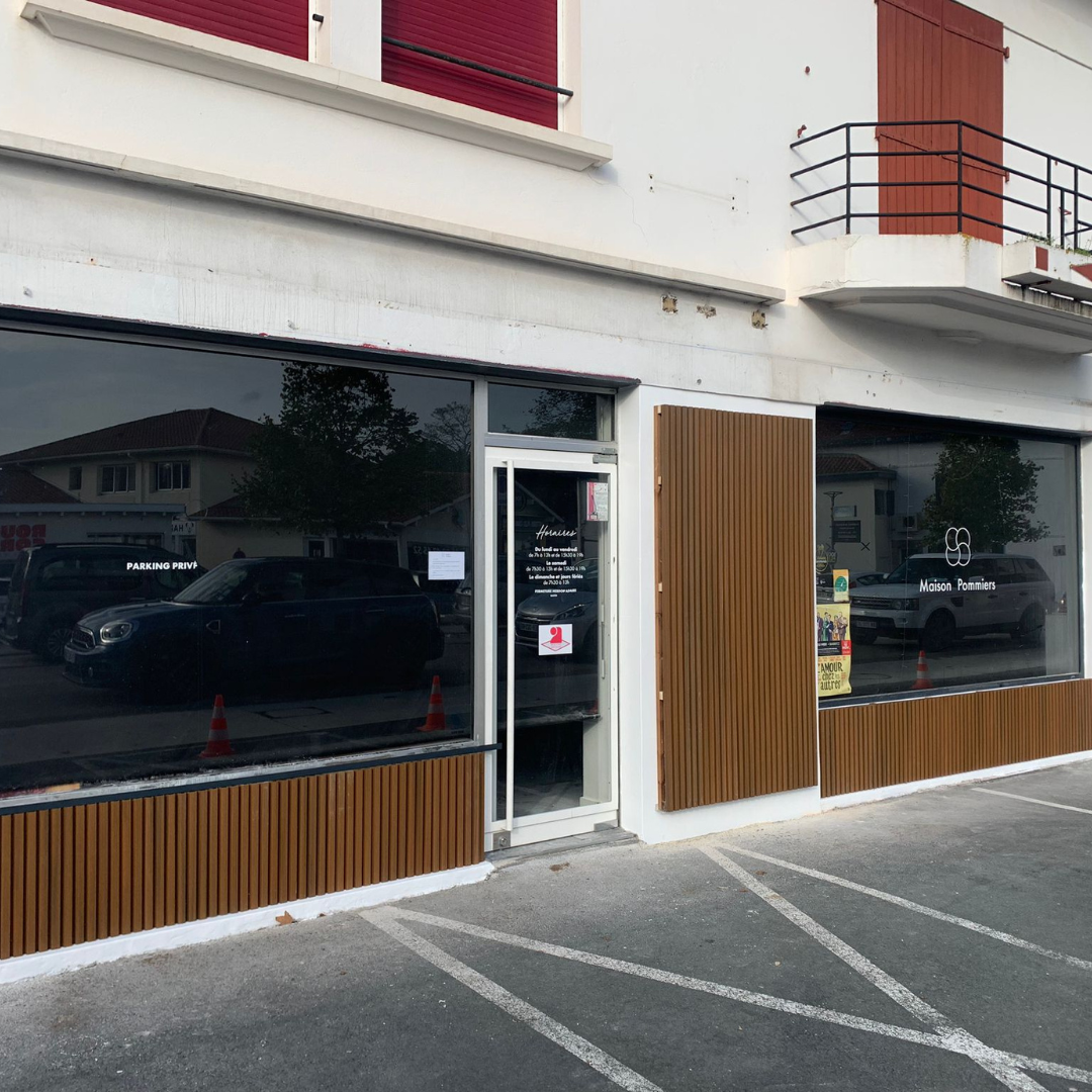 Brief du projet : Pour ce projet de rénovation à Anglet, au cœur du Pays Basque, la pâtisserie Maison Pommiers souhaitait moderniser sa façade. Constat de départ : Une façade vieillissante, grise et peu visible depuis la rue. Une identité visuelle peu affirmée sur l'extérieur. Une perte d'attractivité malgré la qualité reconnue des produits artisanaux. Objectif : Concevoir un projet sur mesure pour redonner de la visibilité et de l’impact à la boutique tout en restant fidèle à l’authenticité de la maison. Enjeux du projet : La rénovation de la façade de la pâtisserie s’est articulée autour de plusieurs enjeux clés : Moderniser l’apparence pour refléter le dynamisme et la qualité de l'enseigne. Renforcer la visibilité et capter l’attention des passants. Asseoir l'identité de marque à travers un design soigné et cohérent. S'inscrire dans une démarche locale en respectant le charme typique du Pays Basque. Conception sur mesure : La conception de ce projet a été pensée en collaboration étroite avec le propriétaire afin de créer une façade unique et impactante : Choix de couleurs claires et chaleureuses pour dynamiser la façade sans dénaturer l’esprit de la boutique. Utilisation de la vitrophanie sur mesure pour habiller les vitrines : motifs inspirés de l’univers gourmand, logo revisité, éléments graphiques élégants. Repositionnement et mise en valeur du logo pour un impact visuel immédiat. Intégration d’un nouvel éclairage extérieur pour valoriser la façade, même en soirée. Chaque détail a été étudié pour garantir la réussite de ce projet de rénovation emblématique au Pays Basque. Réalisation & résultat : La rénovation de la façade de la pâtisserie a été réalisée avec soin, dans le respect des délais : Rafraîchissement des peintures et revêtements extérieurs. Pose de vitrophanies décoratives de qualité professionnelle. Installation d’un éclairage discret mais valorisant. Harmonisation générale de la façade pour une lecture visuelle immédiate. Résultat : Une boutique modernisée, lumineuse et accueillante. Une visibilité largement améliorée dans la rue. Une image de marque renforcée, en parfaite adéquation avec les valeurs artisanales de la pâtisserie. Aujourd'hui, la pâtisserie Maison Pommiers à Anglet bénéficie d'une vitrine qui reflète pleinement son excellence, grâce à une conception de projet sur mesure et une rénovation pensée dans les règles de l’art, fidèle à l'esprit du Pays Basque.
