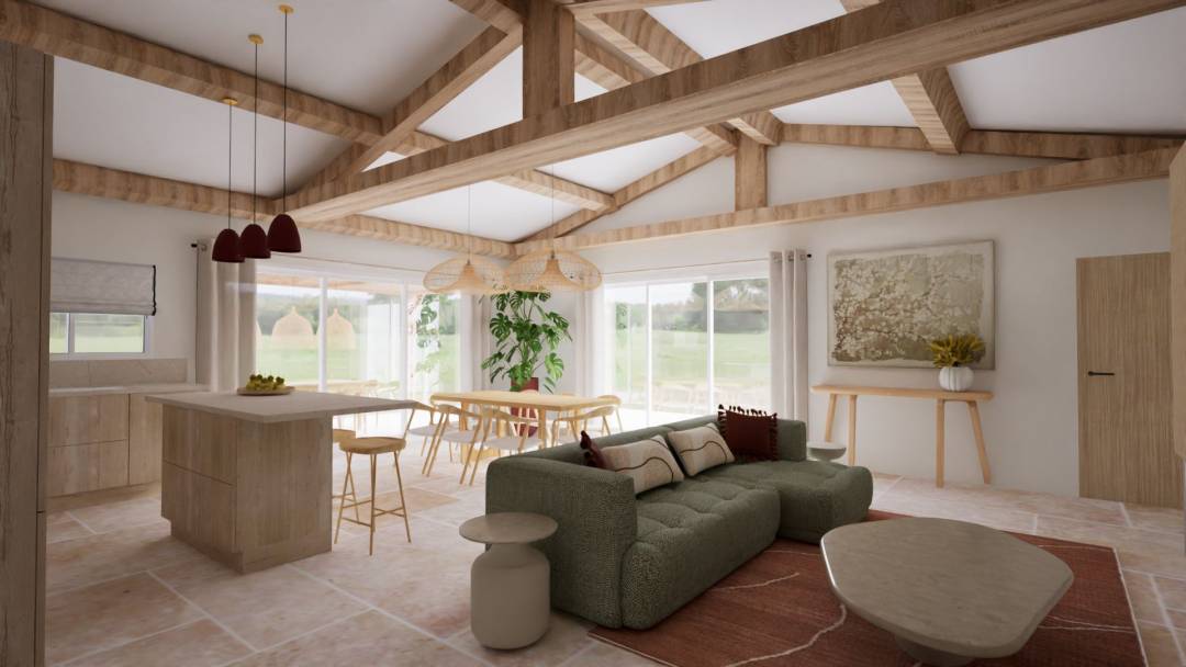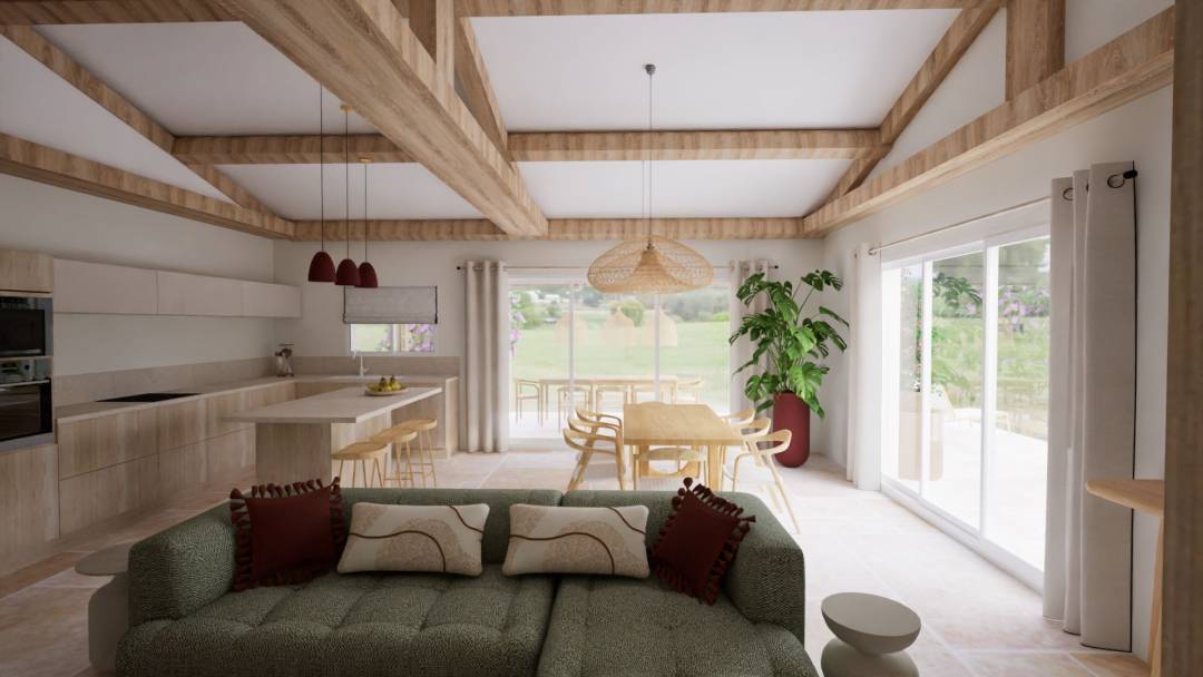 Construction neuve. Proposition d'un style japandi. Pas de contrainte particulière . Création de nombreux meubles sur mesure. Projet d'agencement et de décoration intérieur et extérieur