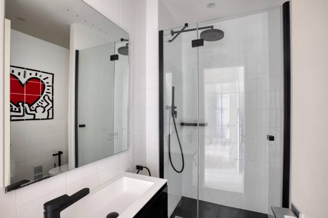 Cet appartement avec vue sur Paris dans son jus s’est refait une beauté intégrale. Les murs ont été rhabillés de papier peint érisé ou floral, la salle d’eau met en valeur un décor original. La salle de bain en marbre est pour sa part modernisé avec ses lignes épurées.