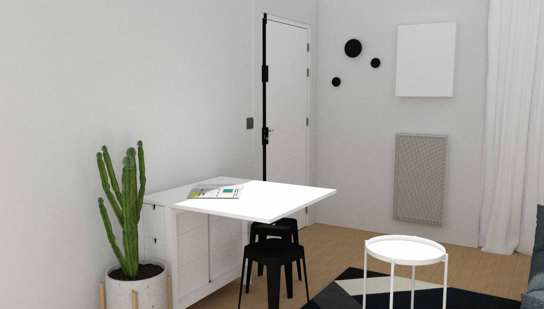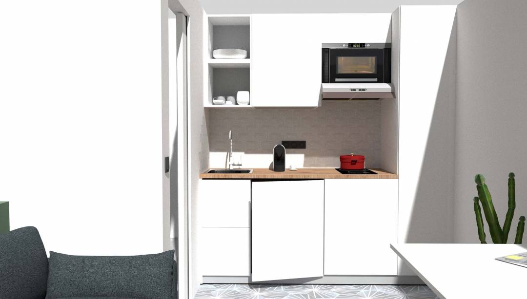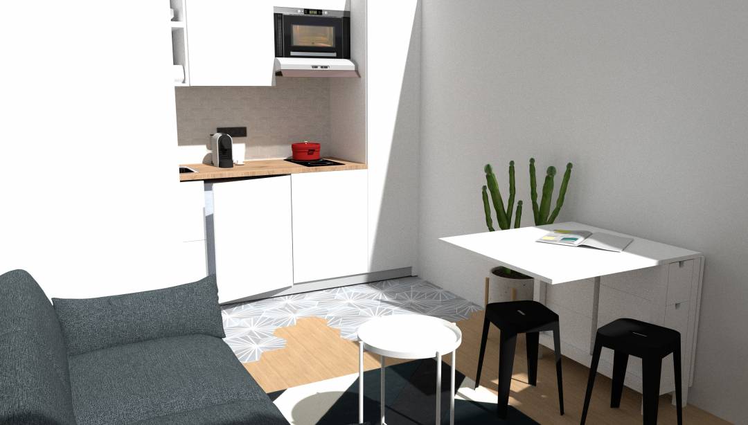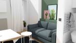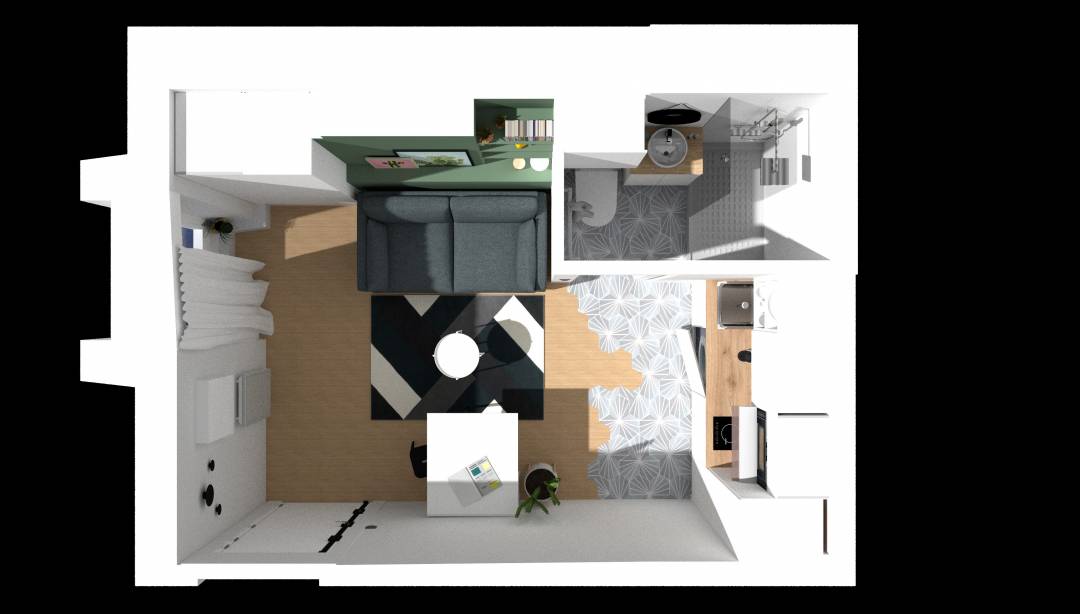 Un projet d'investissement locatif mélangeant le style scandinave et exotique. Un mur vert donne le ton!