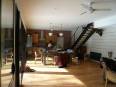 A l’intérieur il voulait pouvoir retrouver la même ambiance avec des cloisons en planches peintes et du plancher à tous les niveaux.