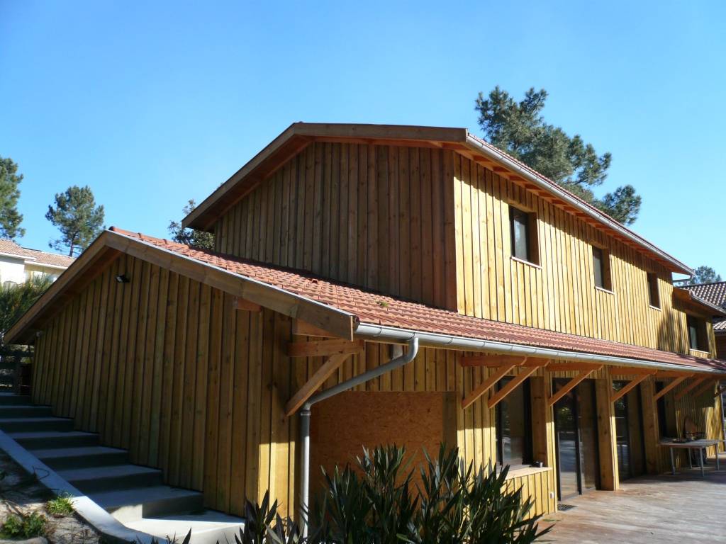 Le client souhaitait une maison de vacances facile à vivre, comme les cabanes de pêcheur du bassin d’Arcachon, avec le bardage en pin maritime constitué de planches avec couvre joint et d’une couverture en tuile mécanique rouge de Marseille, à l’identique de ce que l’on y retrouve.
