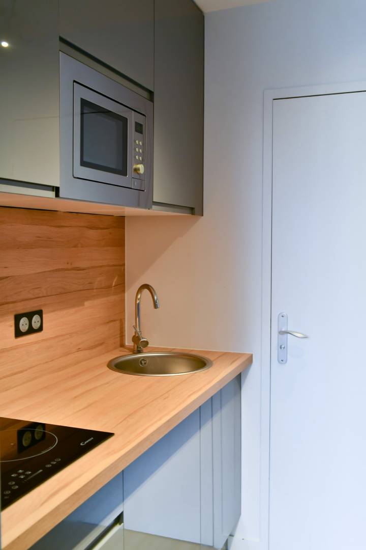Nous avons accompagné notre client spécialiste de la rénovation intérieure et extérieure pour créer un lieu de travail à son image. Nous avons réoptimiser l'espace complet pour créer un appart/showroom : *mettant en valeur les compétences de l'entreprise (revêtements de sols sol souple, revêtements muraux (papier peint), carrelage et faiences, platrerie (faux plafonds...). *recréant un vrai appartement type T2 avec PAV/Kitchenette - WC séparé - chambre/bureau avec SDD attenante. Nous lui avons fourni tous les plans et 3D lui permettant de réaliser les travaux.