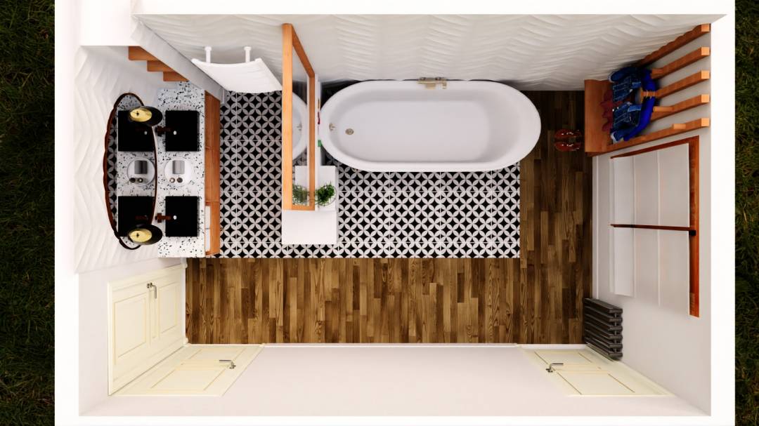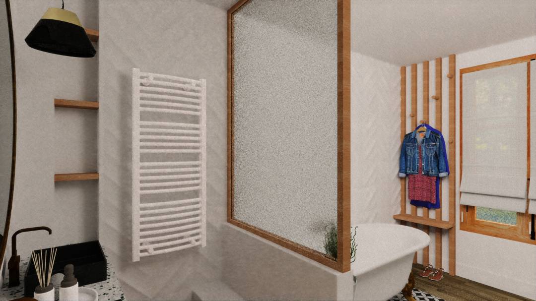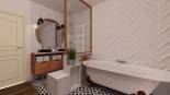 La pièce de 10m² a été traitée et isolée contre l'humidité, permettant d'en faire une vraie salle de bain avec baignoire et double vasque.