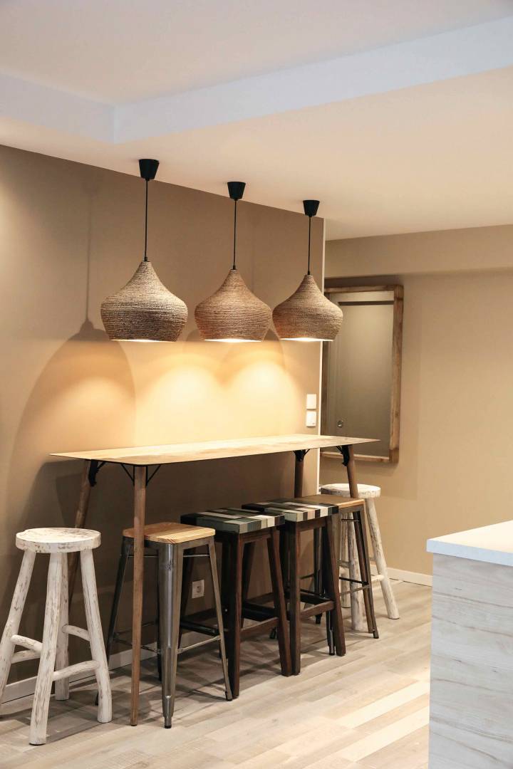 Travaux + Ameublement. Création d'un appartement locatif meublé dans une ambiance bohème/retour de vacances. Il s'agissait d'anciens bureaux sur rue que nous avons subdivisé en 2 appartements respectivement de 55 m2 chacun. Le souhait du client était d'obtenir 2 chambres, 1 canapé convertible, 1 cuisine ouverte et 2 salles de bain avec 1 WC. Pari réussi! Dans un premier temps, il a donc fallu tout casser, décloisonner pour y voir clair et ensuite implanter un jeu de cloisons astucieux et délimiter les espaces techniques. Au final, le rendu est naturel aux accents doux et l'espace optimisé au maximum avec du rangement bien pensé. Le lieu idéal pour accueillir une famille parisienne en quete d'un lieu empli de charme et d'ame.
