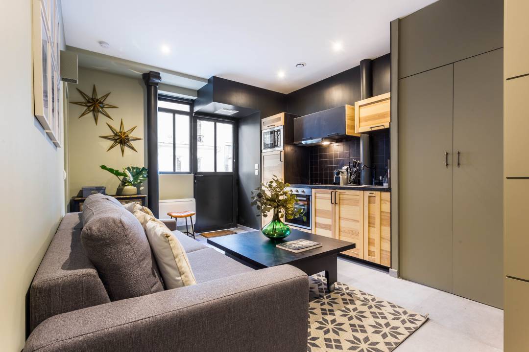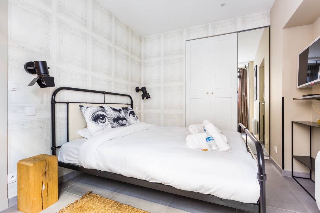 APPARTEMENT 55M2 CANAL SAINT MARTIN PARIS Rénovation, ameublement et agencement de A à Z. L’ensemble du chantier a été réalisé par nos soins du gros oeuvre à la mise en place des meubles et de la décoration. Brief: transformation d’un ancien bureau sur rue en rez de chaussée en appartement composé de 2 chambres dans un esprit chic, masculin et industriel. Le tout sous l’oeil curieux de Lina Cavalieri, muse de Fornasetti.