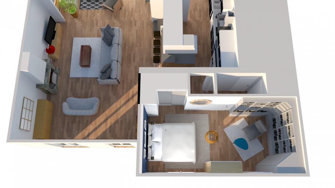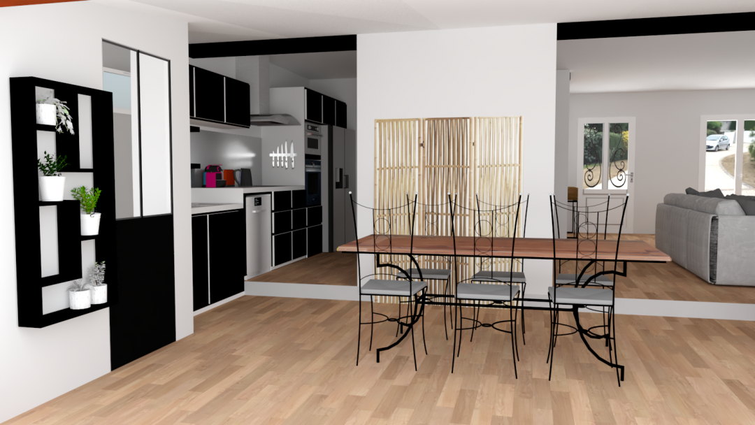 En proposant une projection 3D du projet de rénovation de ce RDC, j'ai pu aider les clients à se projeter dans leur futur intérieur et se lancer plus sereinement dans les travaux. Ils ont été conquis par les visuels de rendu réaliste, et ont donc été conforté dans leur décision.