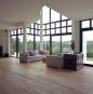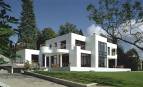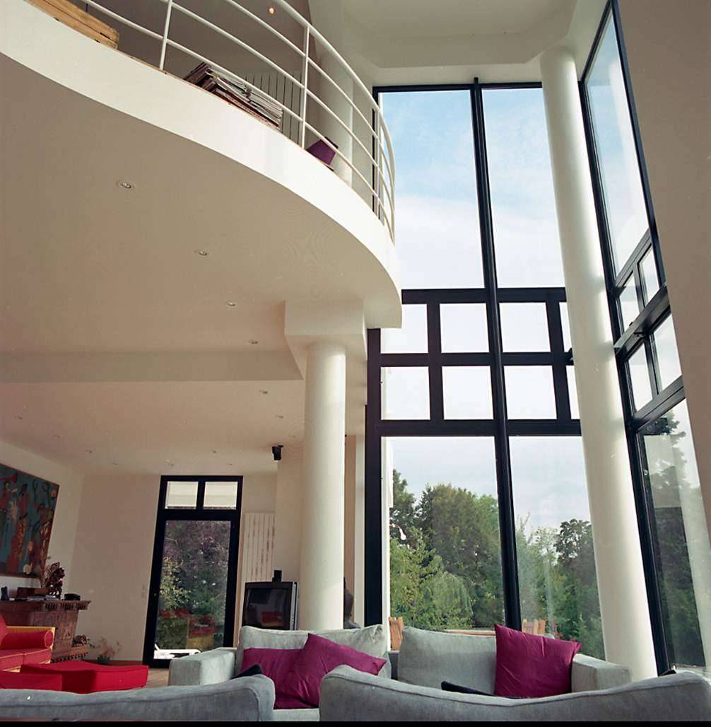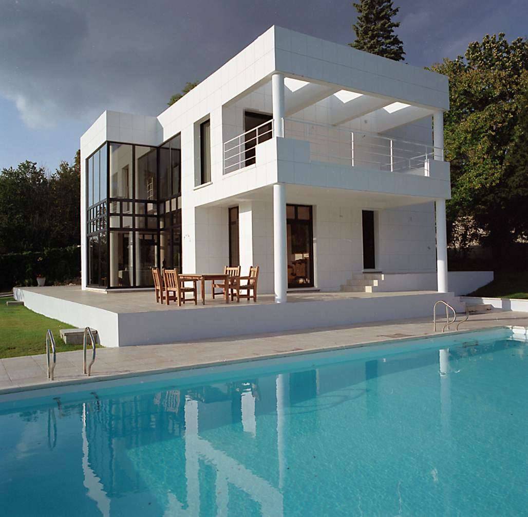 La volumétrie pure et les toitures terrasse affirment le caractère moderne du projet. Les nombreuses baies vitrées permettent de profiter pleinement de la vue offerte par le site. On se trouve à la fois à l'intérieur et à l'extérieur. La modernité du projet est affirmée par un calepinage carré réalisé dans l'enduit.  Cette maison fait l'objet de nombreux tournages de films.