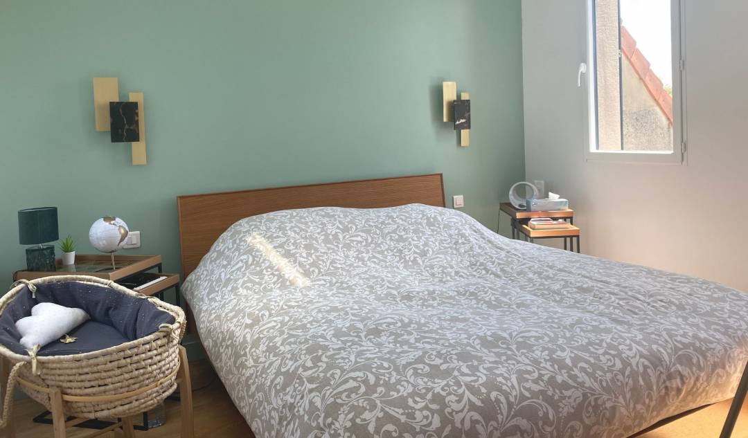 Shopping List pour une chambre parentale délaissée Cette chambre parentale méritait bien quelques finitions. Après avoir consacré 2 longues années à la construction de leur maison, les propriétaires en avaient un peu délaissé leur propre confort. Bébé arrivant bientôt, il était temps que toute la petite famille ait un cocon douillet où se reposer. WherDeco les a accompagné au bout de leur décoration retro vintage qui s'est même poursuivi sur le palier attenant.