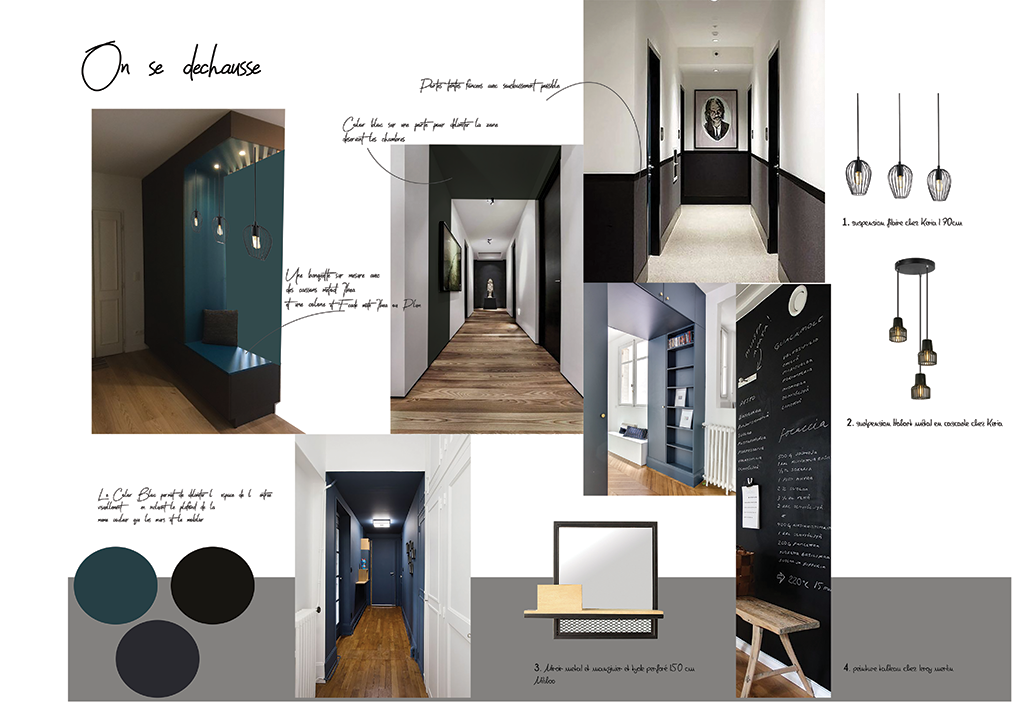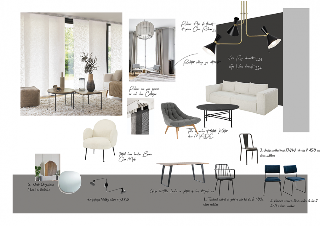 Pour ce projet ma cliente souhaitais un book déco pour des idées matières couleurs et definir les emplacements et leur aménagement. Entre croquis et planches ma clientes avaient les yeux qui brillent. Pour ce projet, ma mission s'est arrétée à la conception!