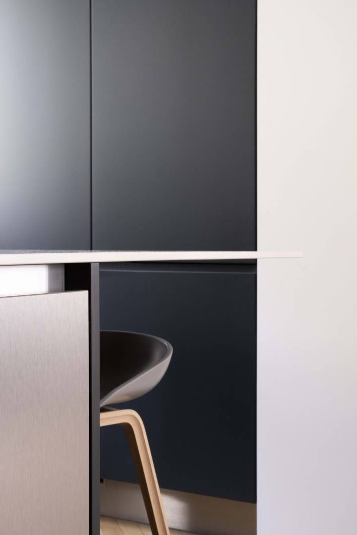 Les clients souhaitez allier ancien et moderne. Un travail sur les semi porteurs ont permis d'ouvrir l'espace et de crée un triple volume avec une lumière traversante. La cuisine n'est pas délimité par une cloison ou un sol, elle se poursuit, s'entremèle avec le couloir principal.