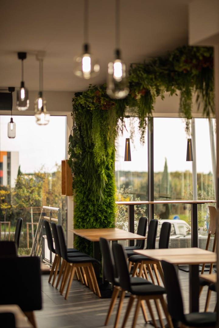 Restaurant Bar à salade sur Montpellier Un coup de cœur pour ce local lumineux! le client s'est tourné vers moi pour créer, agencer, décorer et meubler ce local totalement brut. Ses besoins : Un espace dédié au personnel et la préparation des salades, un espace de restauration en salle et une terrasse. Ses envies et attentes : Une ambiance nature, verte, conviviale pour créer une parenthèse évasion pendant quelques minutes ou quelques heures à l'occasion de la pause déjeuner. J'ai donc proposé et réalisé une ambiance végétale dans laquelle se côtoie Bois, lumière et végétaux mettant en valeur les matières brutes d'origines.