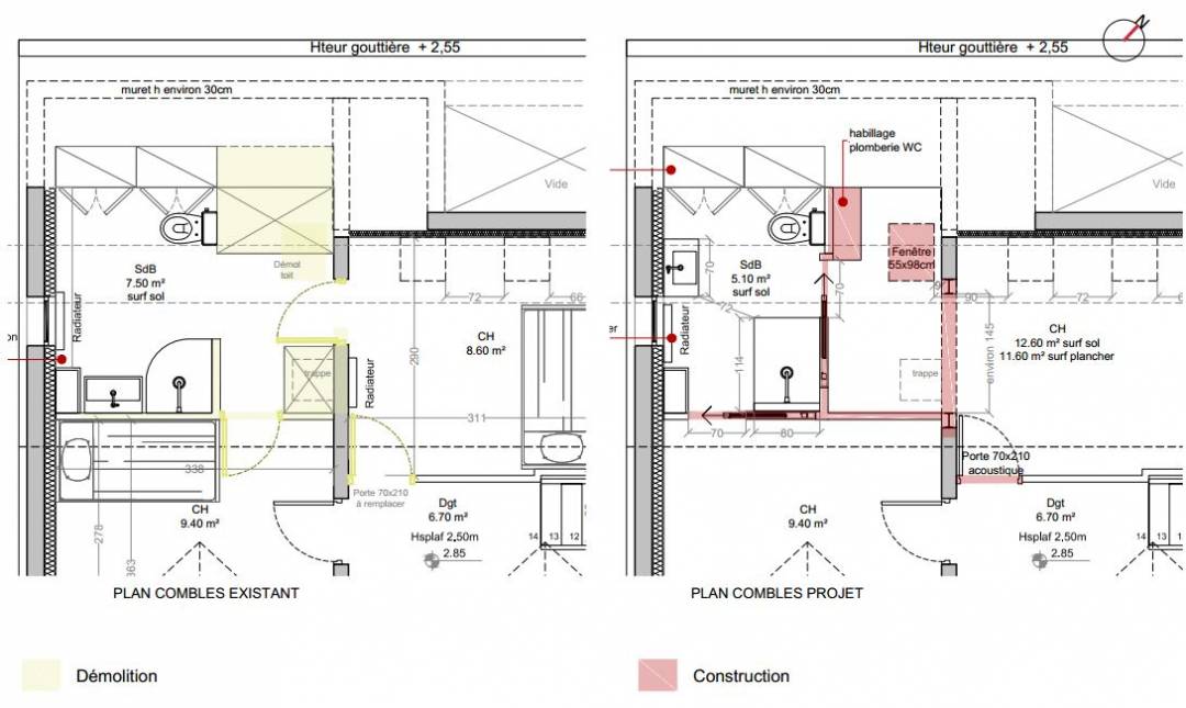 Le projet consiste en la modification de la façade côté rue, Nord-Ouest, par la création d’une nouvelle ouverture dont une fenêtre de toit de 55x98cm qui sera la quatrième fenêtre à côté des trois fenêtres de toit existantes de 55x70cm de taille. La déclaration préalable pour la modification des fenêtre était aprouvé et le prix donné est celui du service de l'architecte. Les images correspondent aux visuels et plans de principe pour exécution. Les travaux en cours asssités par LMDT du Val d' Yerres.