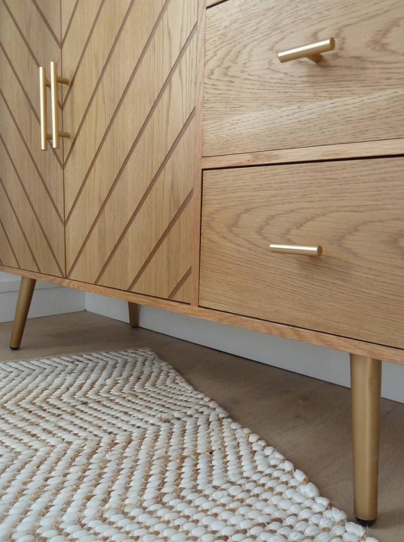 Côté salon, on optimise l’espace avec la création de deux identités propres: le salon et la salle à manger. La cuisine est quant à elle relookée pour être en adéquation avec le style et l’identité choisie