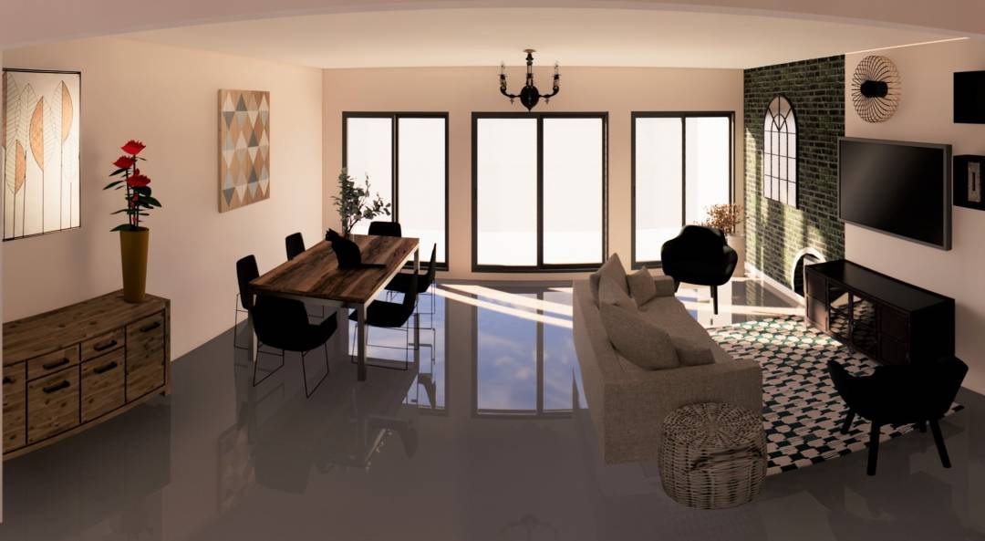 Conception d'un appartement de 135m2. Plans : 2d, 3d et Photoréalisme.