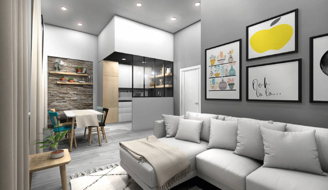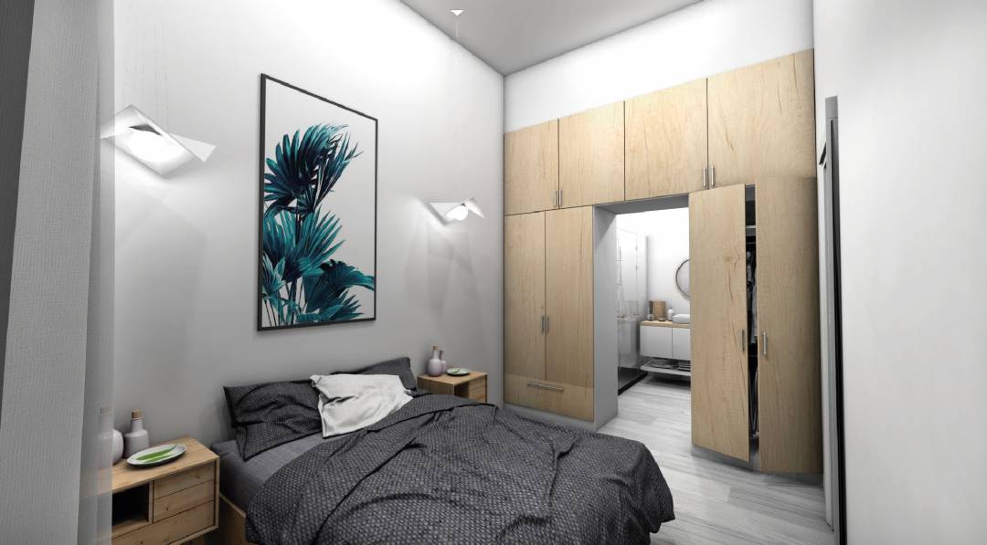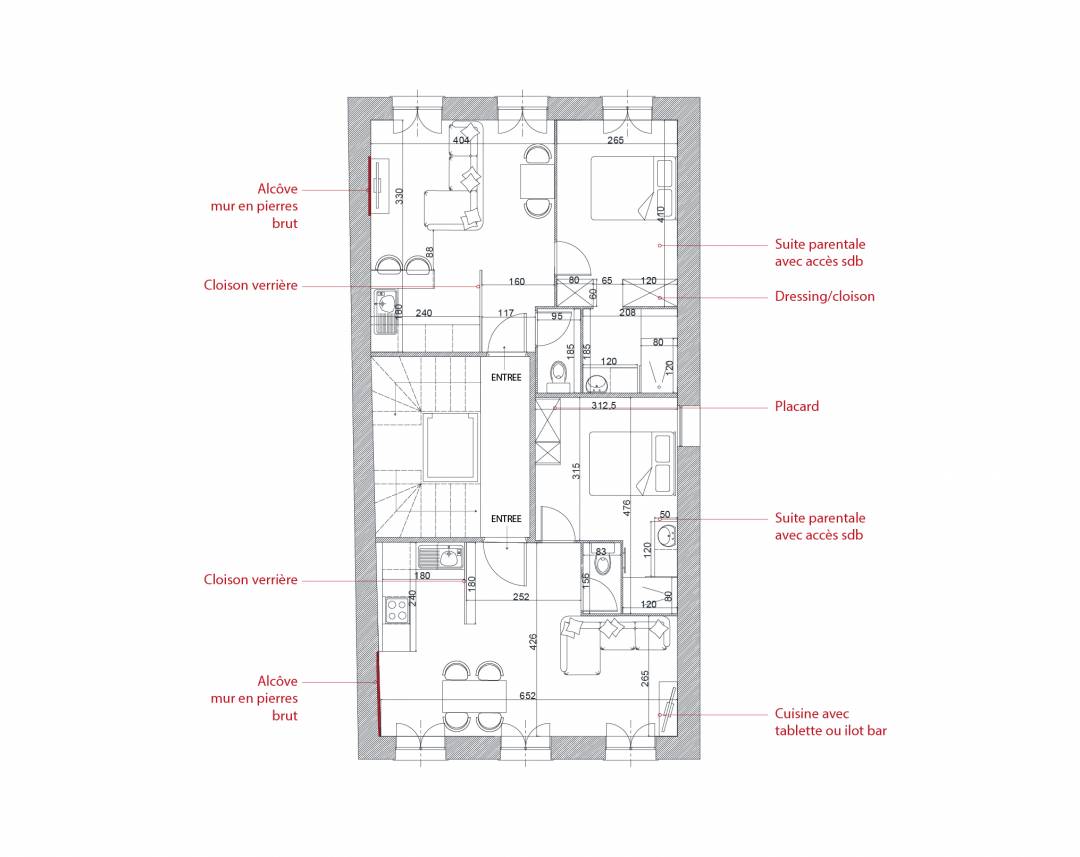Création de logements dans un immeuble de 5 étages. Cet immeuble, laissé à l’abandon, était constitué d’un appartement par étage. Mon travail a été d’établir un état des lieux de l’existant, afin de pouvoir proposer des aménagements pour créer deux appartements par étage. Réalisation de plans, coupes et modélisation 3D. Création de cuisines et rangements sur mesure.