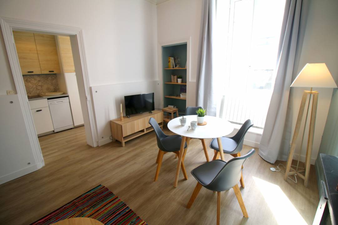 Projet d'aménagement et de décoration pour un appartement déstiné à la location meublée. Pour ce projet, j'ai défini l'ambiance et l'aménagement de la cuisine, du séjour et de la salle d'eau avec des plans, planches ambiance, vues 3D et liste shopping.