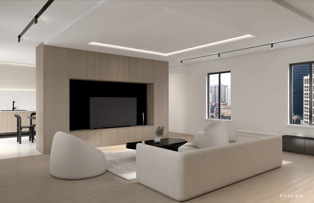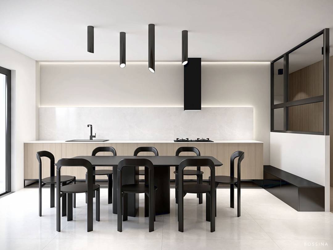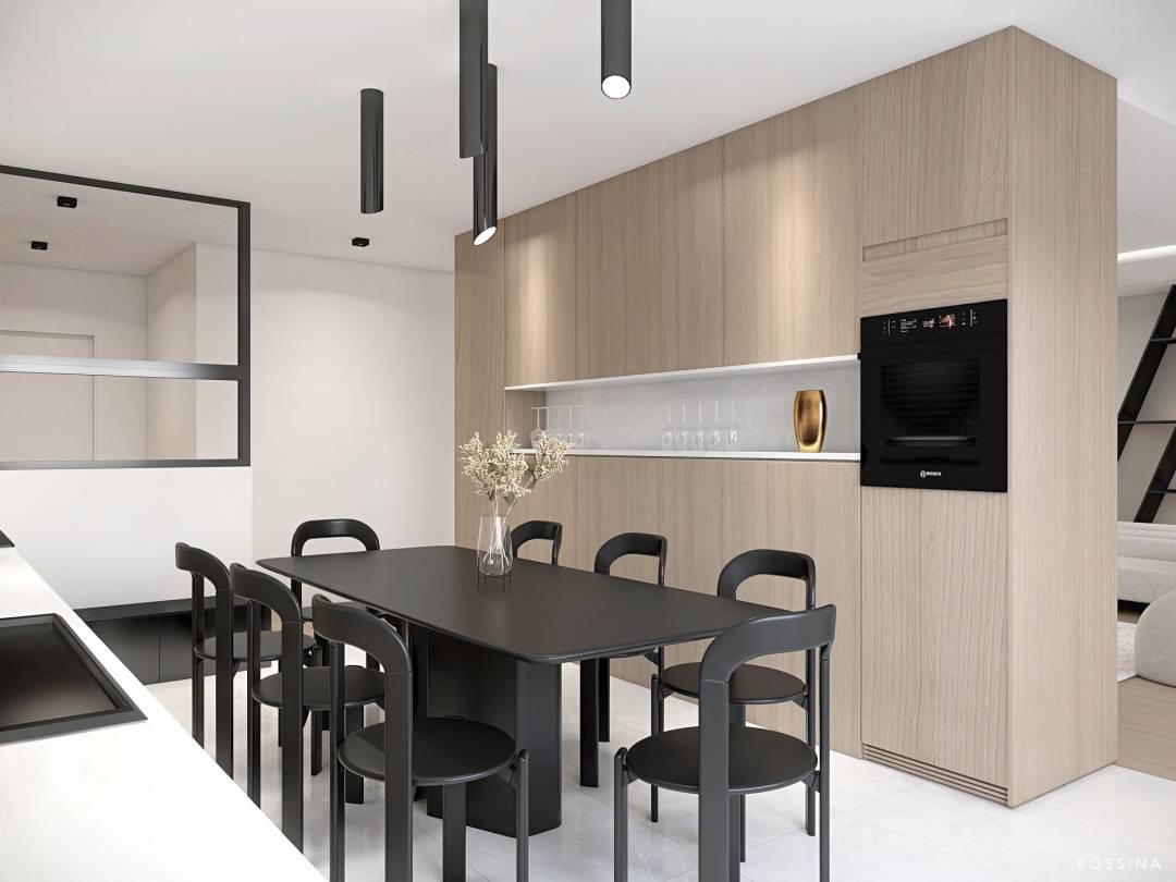 Demande des clients : du rangement / une circulation fluide / un style chaleureux et moderne L’agence Bossina vous présente son projet de rénovation situé à Bordeaux. Pour cela une semi-cloisson a été crée afin de garder une pièce à vivre et une cuisine connecter . Nous avons alors retravaillé l’aménagement de la pièce en créant une cloison centrale afin d’y insérer un meuble Tv coté salon et créer ainsi un espace de rangement (four, réfrigérateur) coté cuisine. Design, ergonomie, équipement, matériaux chaleureux… tout a été conçu pour le confort d’aujourd’hui.