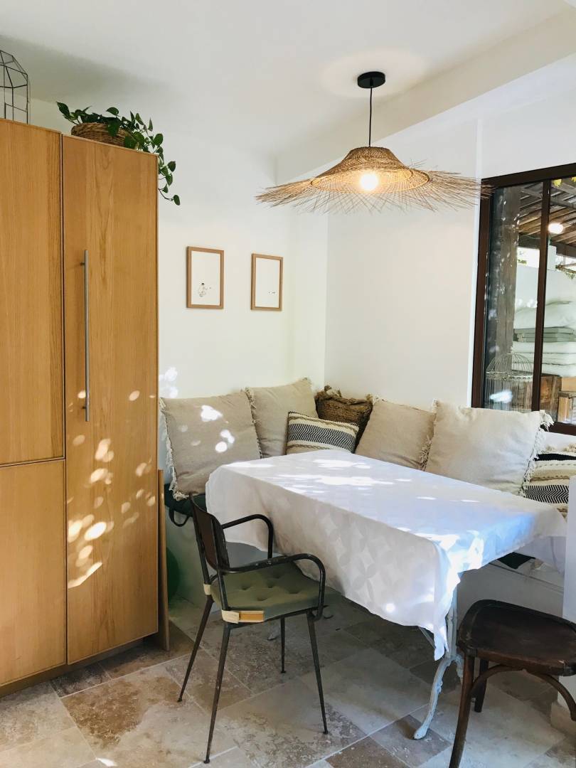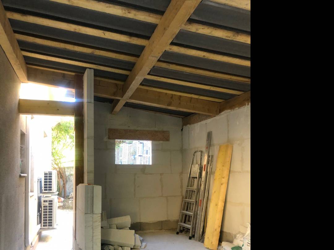 Le projet : Agrandir l’espace de vie. Création d’une extension pour y loger la nouvelle cuisine et donc la sortir de la pièce principale. Démarches administratives de déclaration de travaux en mairie. 18m² de nouvelle cuisine avec coin repas. Ouverture dans mur porteur et pose IPN, création dalle, murs, toiture, conception cuisine avec l’existant, conception fenêtres sur mesures pour un aspect « atelier au fond du jardin » et coin repas sur mesure avec banquette/rangement.
